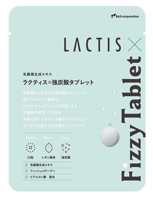 新製品「ラクティス×強炭酸タブレット」は、1914年の創業以来、乳酸菌と健康について研究してきたビーアンドエス・コーポレーションが初めて開発したタブレットタイプの乳酸菌生成エキス製品です。
