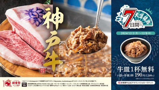 日本3大和牛を“大盤振舞”!「神戸牛100%牛皿」を無料でご提供!