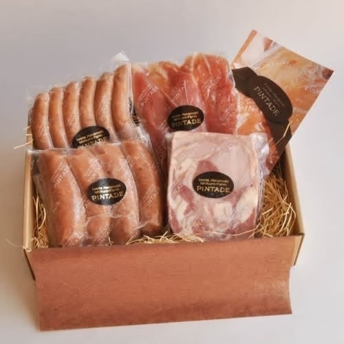 白金豚ポークジャーキー、白金豚の赤味噌入りサラミ、白金豚のスライスサラミのセットです。自家用はもちろんですが、お酒好きのあの方へ、家族も喜ぶ贈り物です。