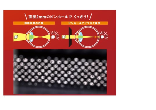 ピンホールの視界で作業しながら目をリラックス&リフレッシュさせ、すっきり感をサポートします。「ピンホール効果」とは、小さな穴を通して物を見ることで、目に入る光を制限し、物が見やすくなる効果のことです。これによりピント調整を担う目への負担を軽減することができます。