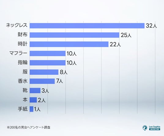 ロマンチックな時間を演出できるネックレスが人気を集める一方で、実用性のある財布が20.8%と2番目に多い結果に。