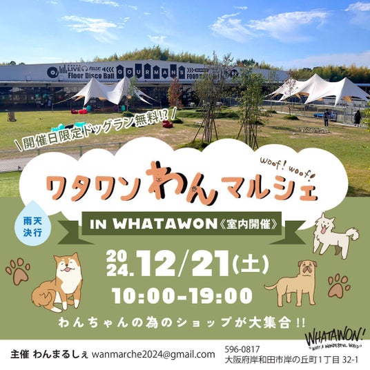 2024年12月21日(土)には、『Floor Disco Ball(フロアディスコボール)』にて、人気イベント「ワタワンわんマルシェ」の開催が予定されています。わんちゃんのためのショップが大集合するこのイベントは、毎回多くの来場者が訪れ、愛犬との特別な時間を楽しむことができます。今回のマルシェでも、多彩な商品がラインナップ。オーナー同士の交流や、わんちゃんとの生活をもっと豊かにするアイディアを得られる場となっています。ワタワンならではの楽しいひとときを、愛犬と一緒にお過ごしください!