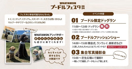 株式会社antiquaが手がける滞在型エンターテインメントモール「WHATAWON(ワタワン)」にて、2024年12月21日(土)に『プードルフェスタ2024』が開催されます。
