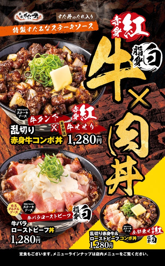 12月2日(月)全国のすた丼屋で販売開始!牛肉を使用した圧巻の豪勢などんぶり3種がすた丼屋に登場!