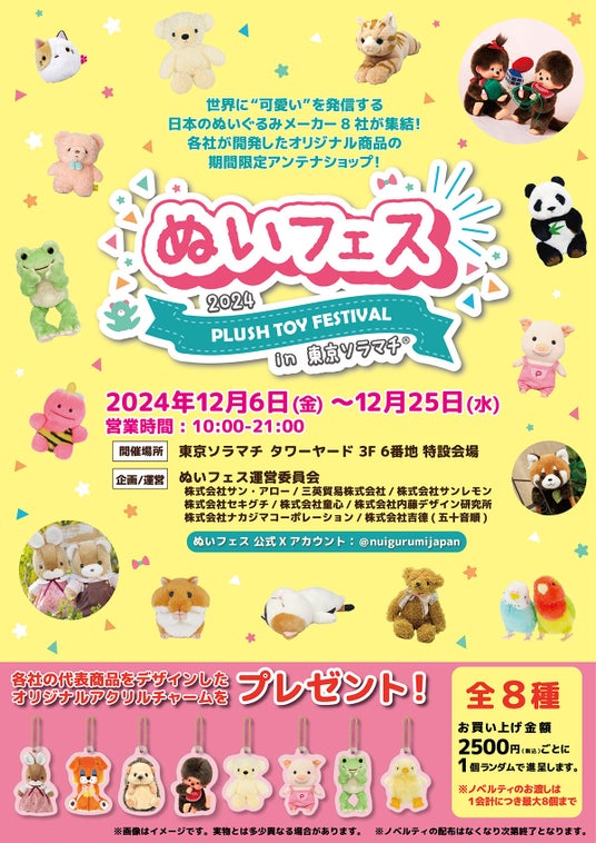 世界に"可愛い"を発信する日本のぬいぐるみメーカー8社が集結する「ぬいフェス 2024 in 東京ソラマチ(R)」にて先行発売をします。