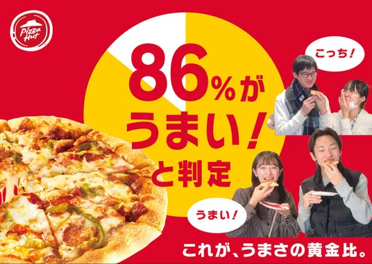 そしてこの度、さらに多くの方に「うまさの黄金比」を体験いただくため、12月6日(金)・7日(土)の2日間限定で、全国47都道府県130店舗にて「AIピザ」(モッツァレラチーズが130%に増量されたデラックス Mサイズ・ハンドトス生地)を無料で提供する「本当にこっちがうまいか体験会」を実施いたします。ぜひこの機会に、AIとピザ職人が導き出したベストなピザの黄金比で、さらにおいしくなったピザハットの商品をお楽しみください。