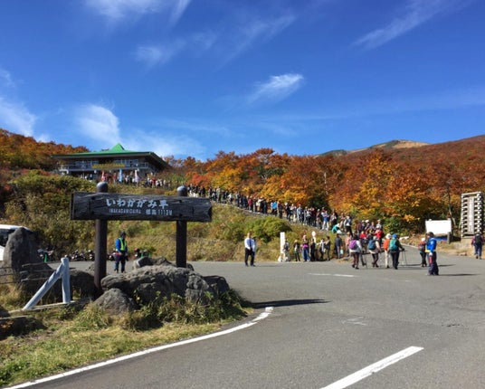 紅葉シーズンの栗駒山への登山口、いわかがみ平には長者の列が発生する