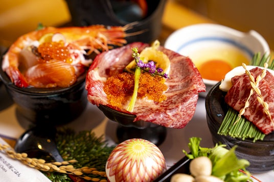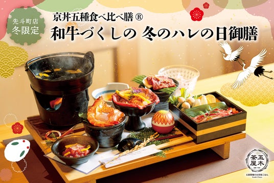 五穀豊穣のお茶屋ごはん(R)︎ 五木茶屋 先斗町店では、和牛を中心に旬の食材を堪能できる【冬の京丼五種食べ比べ膳(R)︎】をご用意しています。
