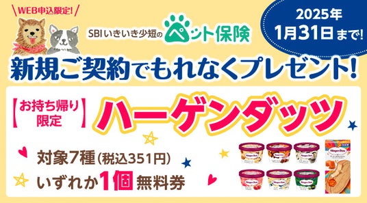 【SBIいきいき少短】ペット保険のWEB申込で「ハーゲンダッツ」をプレゼント!