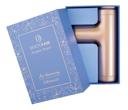2025年1月4日(土)~2月28日(金)の期間、Rintosullのロゴが入ったオリジナルエクサガン<ピンクゴールド>を各店数量限定で販売します。今回限定で持ち運び用の巾着付きで、スマホサイズのため持ち運びもラクラクです。レッスン前やホームケアで使用し、日々のカラダのメンテナンスにお使いください。