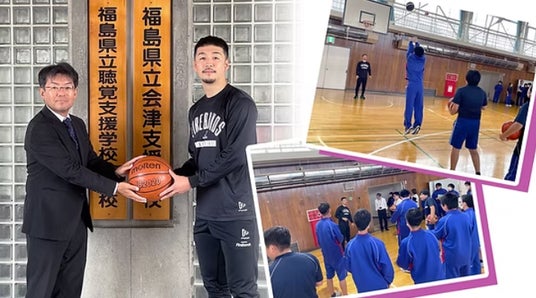 「マイボトルプロジェクト」の次のステップとして、10月に福島県立会津支援学校を訪問。田渡選手からを子どもたちにシュートレクチャーをするなど、バスケを通じて生徒さんとのふれあいの時間も設けました。また売上の一部を活用し、11月以降に開催されるホームゲームに、生徒さんと親御さんをご招待する取り組みも、実施中!