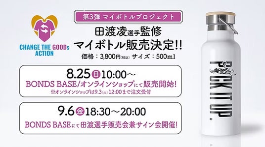 【第3弾】プラスチックごみの削減に向けて、田渡選手がデザイン監修した「マイボトル」を200個販売!