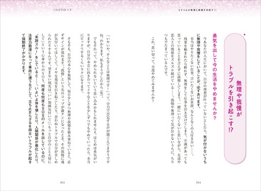 答えが「NO」の人には、やさしく読みやすい、誰でも一歩が踏み出せる本書の内容がきっと役に立つはずです。自分を愛して、無理や我慢をやめれば、あなたも必ず理想の人生が叶います!
