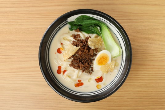 「和と中華の新しい魅力を楽しめるうどんです。余った豆乳だしは白だしで割ることで、最後まで美味しく召し上がれます!」