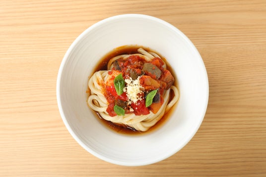 フランス料理「ラタトゥイユ」と日本のうどんを融合させた、新感覚の食体験を提供。関西風のだしとラタトゥイユが絶妙にマッチしたヘルシーな一品です。
