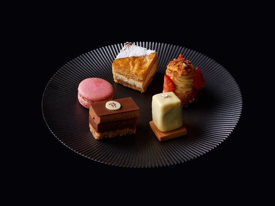 (左奥より時計回りに)マカロン アンフィ二マン ローズ、ミルフィユ アンフィ二マンヴァニーユ、コンステラシヨン、キャレアンヴィ、プレジールシュクレ