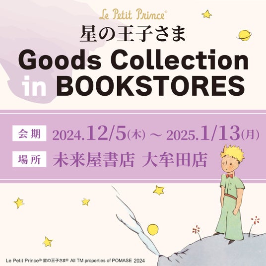 株式会社マリモクラフト(本社:東京都江東区)は、世界中で愛され続けている絵本『星の王子さま』の名シーンをモチーフにしたオリジナルグッズを、巡回中の期間限定書店ポップアップショップ「星の王子さま Goods Collection in BOOKSTORES」として12月5日(木)より未来屋書店 大牟田店にて販売いたします。「ミニグラス」や「マグカップ」「マルシェバッグ」「パフクッション」など普段使いに便利なアイテムを豊富に取り揃えました。さらに、『星の王子さま』オリジナルグッズを1会計1,000円(税込)以上ご購入でノベルティ「ポストカード」を1枚プレゼントいたします。
