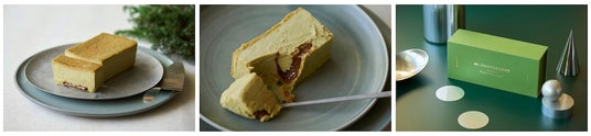 濃厚なピスタチオの生地にピーカンナッツのプラリネを忍ばせた贅沢な味わいのフレーバー。ホリデーシーズンの煌めきをイメージした緑色の限定Boxに包んでお渡しします。おすすめの食べ方は、ピスタチオとプラリネが織りなす濃厚な旨味とコクを楽しめる全解凍。冷凍または半解凍の状態でケーキをカットし、お皿の上でプラリネが溶けていくのを楽しみながらお召し上がりください。