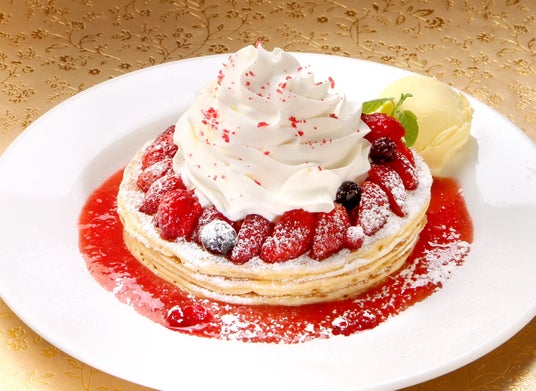 - クリスマスをイメージしたパンケーキは、真っ白なホイップクリームが雪化粧されたクリスマスツリーのよう!