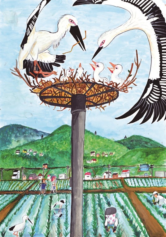 環境大臣賞 兵庫県 神代絢香(6年生) コウノトリは、この田んぼが大好き!