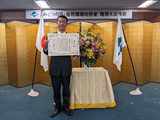 地域の自然環境保護活動として顕著な功績が認められ、令和6年度「みどりの日」自然環境功労者環境大臣表彰を受賞しました。