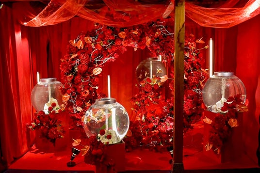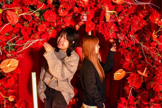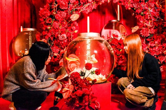 クリスマスカラーに染まる幻想空間 「煌めきんぎょ」企画展が奈良金魚ミュージアムで開催。赤と白のコントラストがサンタクロースを連想させる特別展示。