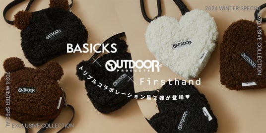 株式会社デイトナ・インターナショナルが運営するサステナブル・ファッション・アートをテーマとしたコンセプトストア「Firsthand (ファーストハンド)」 は、大好評【Firsthand×OUTDOOR PRODUCTS(アウトドアプロダクツ)× BASICKS(ベイシックス)】トリプル別注BAG の第二弾をFirsthand RAYARD MIYASHITA PARK・公式オンラインストア「Daytona Park(デイトナパーク)」にて、12月6日(金)より販売開始いたします。新作はウォーミーなもこもこボアで冬のファッションに大人のキュートさをプラスし、キャッチーなハートとベアのミニBAGの全2種展開です。