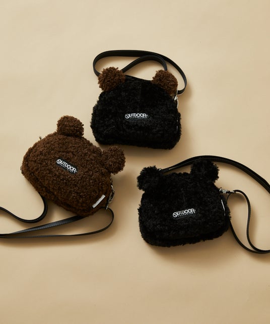 まるでぬいぐるみのような立体的なデザインでキュートさ抜群なアイテムです。ショルダー紐を外してバッグインバッグとしても使用可能です。秋冬らしいダークカラーのブラックとブラウン、2色をMIXさせたブラック×ブラウンの3色展開です。