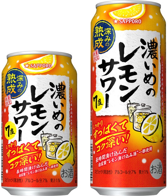 「サッポロ 濃いめ」ブランドの特長であるギュッと搾ったようなしっかりすっぱいレモン味“濃いめ”はそのままに、通常の6倍の時間じっくりと漬け込んだ、レモン漬け込み酒を一部使用し、コク深く余韻のある味わいを実現しました。