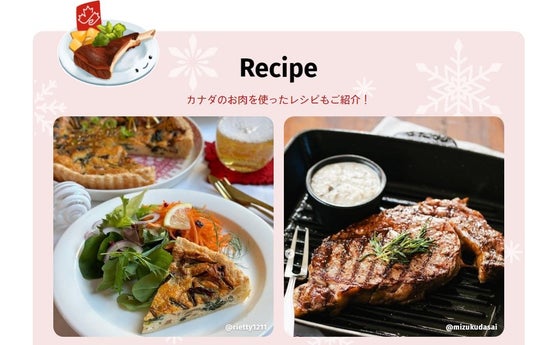 これから迎える冬のホリデーシーズン。大切な人とおいしい食事を囲んで楽しいひとときを過ごす機会も多くなります。クリスマスや忘年会、お正月など、いつもより華やかに食卓を演出する時期に、カナダの美味しい食材を取り入れてみてはいかがでしょうか?「楽天市場」では、今回のキャンペーンで中心にご紹介するカナダ産の牛肉や豚肉、ロブスターやズワイガニなどのメインとなる食材をはじめ、ワインやウィスキーなど美味しい食事と一緒に味わいたいアルコール飲料も豊富に取り揃えています。また、サイトではこれらの食材を使用したおすすめのレシピもご紹介します。前菜からメインまでカナダ産食材で彩られたとっておきの料理で、心躍るパーティータイムをお過ごしください。