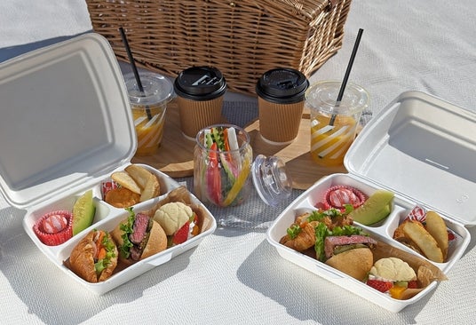 本プランでは、ビーチで楽しく過ごすためのラグやクッションといったピクニックセットをご用意、レストランで朝食(テイクアウトBOX)が入ったバスケットをお渡します。