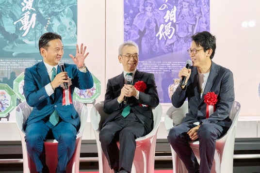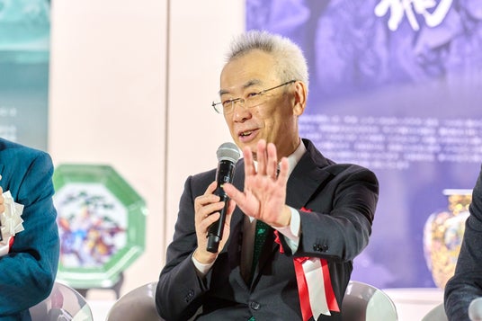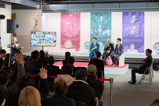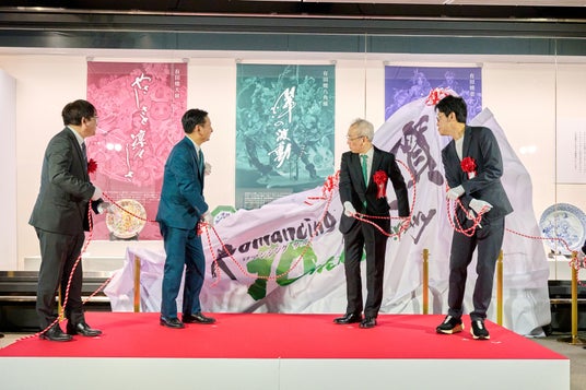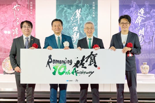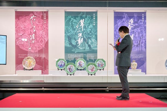 本セレモニーでは、10周年を記念した新作コラボレーション有田焼3作品のアンベールや、山口祥義(よしのり)佐賀県知事と「サガ」シリーズ総合ディレクターの河津秋敏氏とプロデューサーの市川雅統氏による10年間の歩みを振り返る特別トークセッションが行われました。