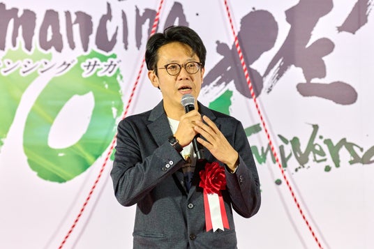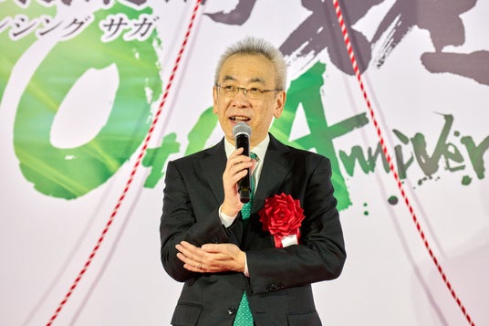 「佐賀と『サガ』、名前の一致というちょっとした縁が、ここまでの大きな冒険につながりました。マンホール、有田焼陶板、温泉、列車など、ファンの皆さんの旅する声が届き、一緒に作り上げてきたプロジェクトです」と、10周年を迎えた感謝の思いを述べました。