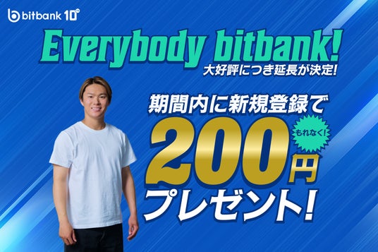 【暗号資産取引ならビットバンク】新規登録でもれなく200円プレゼントキャンペーン延長が決定!