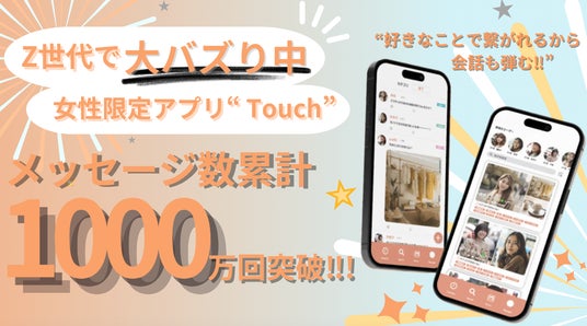 【SNSで大バズり!!︎】大人になっても趣味で繋がれる女友達が欲しい!️アプリで解消!!~SNSで大バズりの『Touch(タッチ)』が累計メッセージ数1000万回を突破!︎~