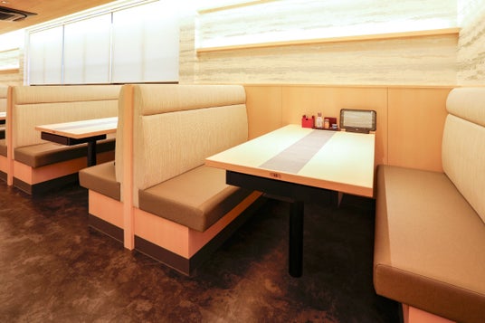 テーブル席はお履き物を脱がずに着座できるベンチシートタイプに変更。ゆったりと設計した6名掛けのお席で、ご家族のだんらんにもおすすめです。