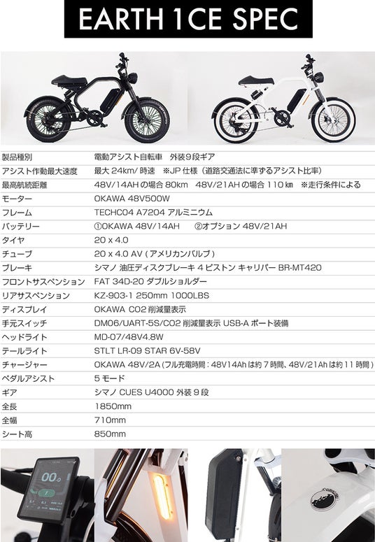 最高航続距離 : 80km(48V/14AH) or 110km(48V/21AH) ※走行条件による
