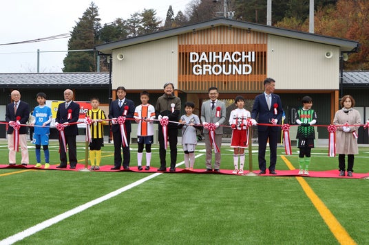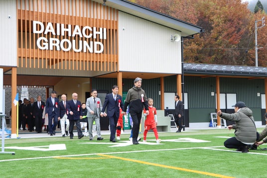 岐阜県高山市では、市内初の人工芝を使った「大八グラウンドサッカー場」が完成し、令和6年11月24日(日)に開催したオープニングセレモニーには、関係者や地元の子どもたちおよそ300人が出席しました。