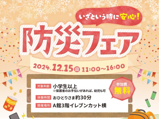 株式会社東急モールズデベロップメント(本社所在地:東京都渋谷区、代表取締役社長:佐々木桃子、以下:当社)が運営する、地域密着型商業施設「港北 TOKYU S.C.」(所在地:神奈川県横浜市都筑区、以下:当施設)は、2024年12月15日(日)に「いざという時に安心!防災フェア(以下:本イベント)」を開催します。