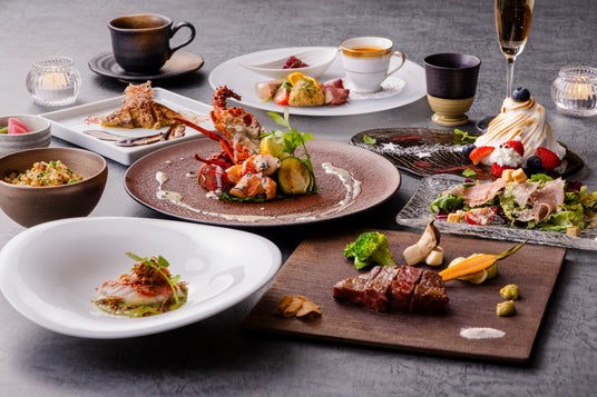 また、クリスマス期間中<12月21日(土)~12月25日(水)>は、人気の鉄板焼きメニュー4種「瑠璃 ~るり~」「萌黄 ~もえぎ~」「琥珀 ~こはく~」「蒲葡 ~えびぞめ~」の、前菜、サラダ、デザートをクリスマス仕様にしたスペシャルディナーが登場します。香り豊かな口どけの良い神戸牛や佐賀牛、伊勢海老や鮑など大切な方との記念日を彩ります。今年の冬は、「鉄板焼 ふじた」にて、記憶に残るお食事を心ゆくまでご堪能ください。