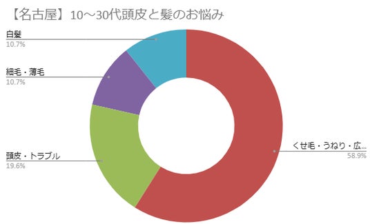名古屋10-30代は「頭皮トラブル」に悩みがち!「くせ毛・うねり・広がり」の悩みも。【ヘアチェックFaviewお悩み調査】