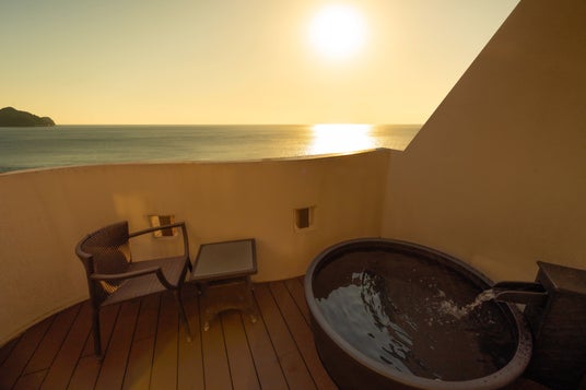 ・夕食朝食ともに、夕日を一望できる露天風呂客室でごゆるりと堪能