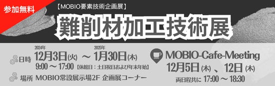 12月3日(火)~1月30日(木)、難削材加工技術を持つものづくり企業30社がMOBIOに出展!チタン、インコネル、ハステロイなどあらゆる難削材加工技術が勢揃いする展示イベントを初開催します。