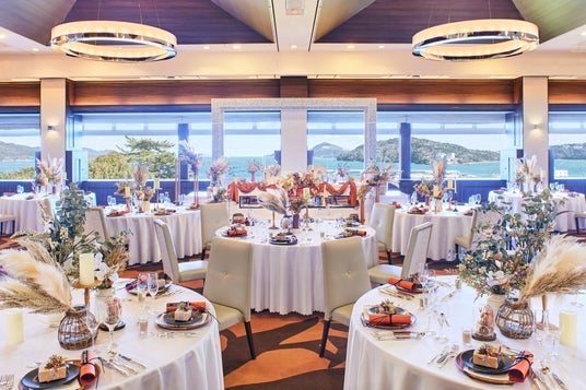 ご家族だけのアットホームな会食や、カジュアルなパーティー、大人数の披露宴まで、参列人数に応じてご提案をさせていただきます。全ての会場からは、鳥羽湾の美景も望められるので、絶景という演出もプラスされ、おふたりの思いや個性に合わせたコーディネートも叶います。