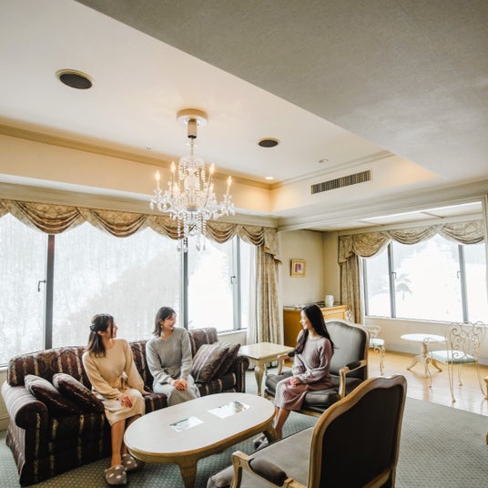 地下1,200mから湧き出る自家源泉「猪苗代温泉」はアルカリ性の単純温泉でお肌もすべすべ。雪原の向こうに猪苗代湖も望めます。
