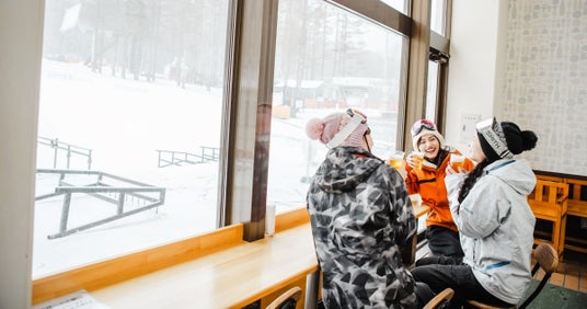 スキーの休憩に最適なセンターハウス。火照った体を冷やす生ビールの他にカレーやラーメン等の軽食をリーズナブルな価格で用意。B1には無料の休憩所も用意しています。
