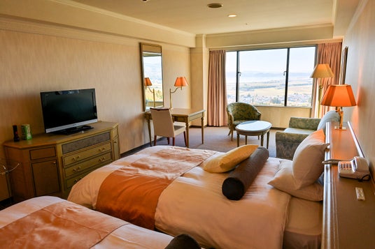 猪苗代湖正面。全室37m2以上の大型客室(洋室例)