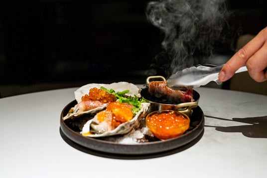 旬の生牡蠣に薄切り黒毛和牛サーロインを巻き、目の前でスタッフが鉄石で焼き上げます。たっぷりの「シラリカいくら」と鬼おろしポン酢と共に、食感や香りを楽しみながらお召し上がりください。