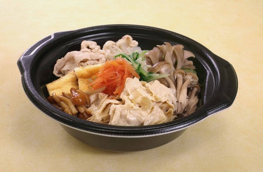 なだ万厨房の鍋料理は、老舗ならではの出汁を使用し、素材の旨みを引き出した鍋のスープが特徴です。例えば「鶏とつみれのスープ鍋」(税込1,323円)は鶏つみれや鶏肉を焚いて鶏の旨みが凝縮された出汁に、舞茸、えのき茸、大根、人参、玉葱、キャベツ、水菜、紅白餅などを合わせ、彩り良く仕上げました。「湯葉ときのこの豆乳鍋」(税込1,323円)は出汁で豚肉を焚いて旨みを凝縮させたスープ地を使い、豆乳、信州味噌と白味噌でコク深い味わいと、4種類のきのこの旨みをプラスしました。出汁を含んだ湯葉や薄揚げは、和食ならではの優しい味わいです。どちらもうどんが入っており、鍋料理の〆めまでお楽しみいただけます。また電子レンジ用の容器で温めも簡単なため、ご高齢の一人暮らしにもおすすめです。