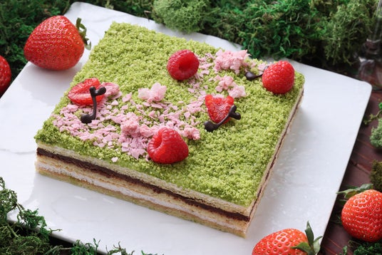 【いちごあめ】は美味しく見た目も楽しくインスタ映え!ヨモギ風味の生地に桜餡を混ぜ込んだバタークリームと塩味の効いたガナッシュで仕上げた【桜のオペラ】は、美しい桜と春の情景を和のイメージで表現しました。パイ生地のサクサク食感が楽しい【グラスミルフィーユ】は、生地の下に酸味の効いたラズベリーのコンフィチュールとほうじ茶のムースを忍ばせています。お好みでアイスを添えてお召し上がりください。